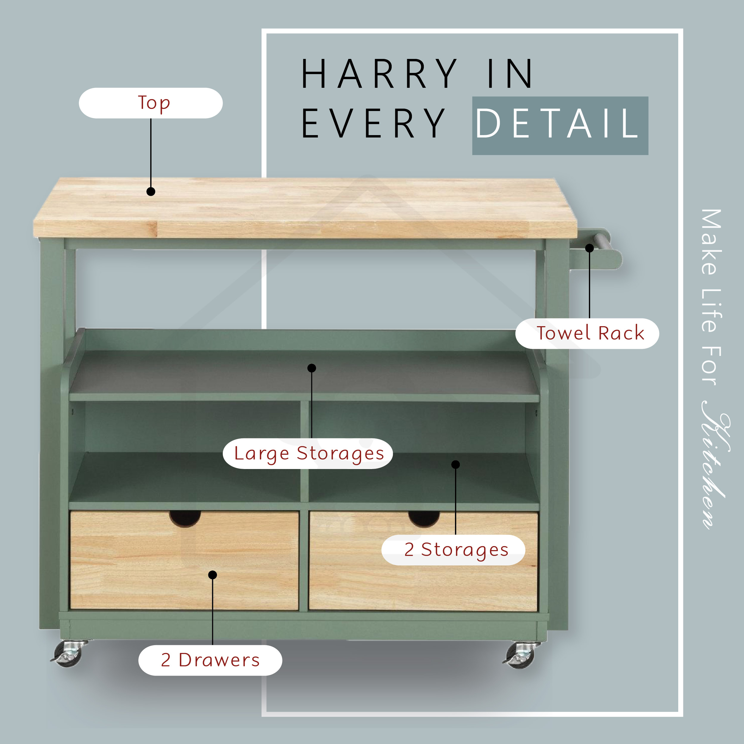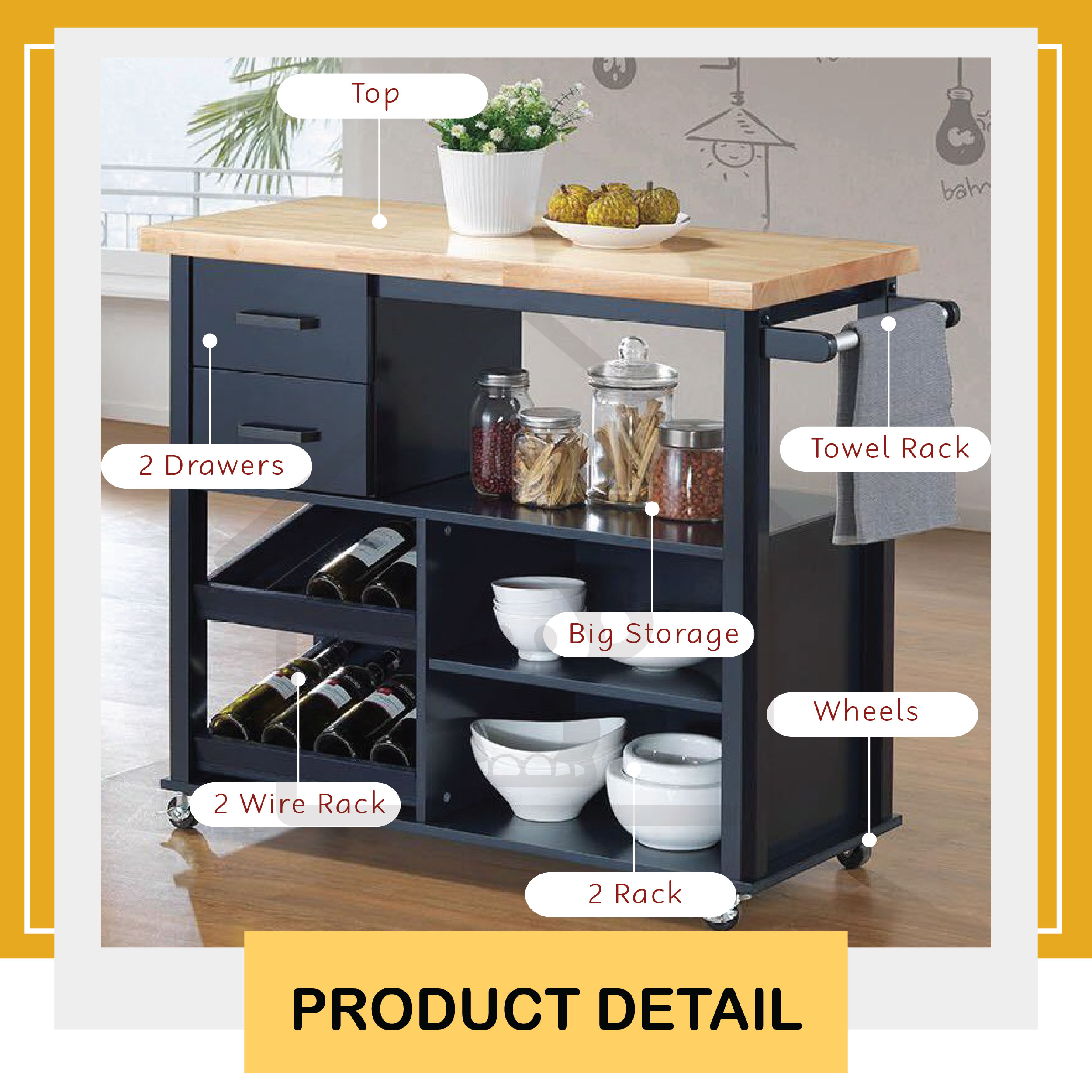 Harry Kitchen Cart Kitchen Trolley Kitchen Island Trolley Rolling Cart Kitchen Cart Kitchen Trolly Shopee Singapore